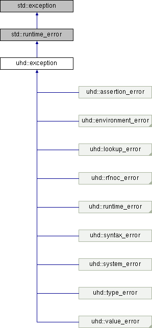 uhd::assertion_error uhd::environment_error uhd::lookup_error uhd::rfnoc_error uhd::runtime_error uhd::syntax_error uhd::system_error uhd::type_error uhd::value_error